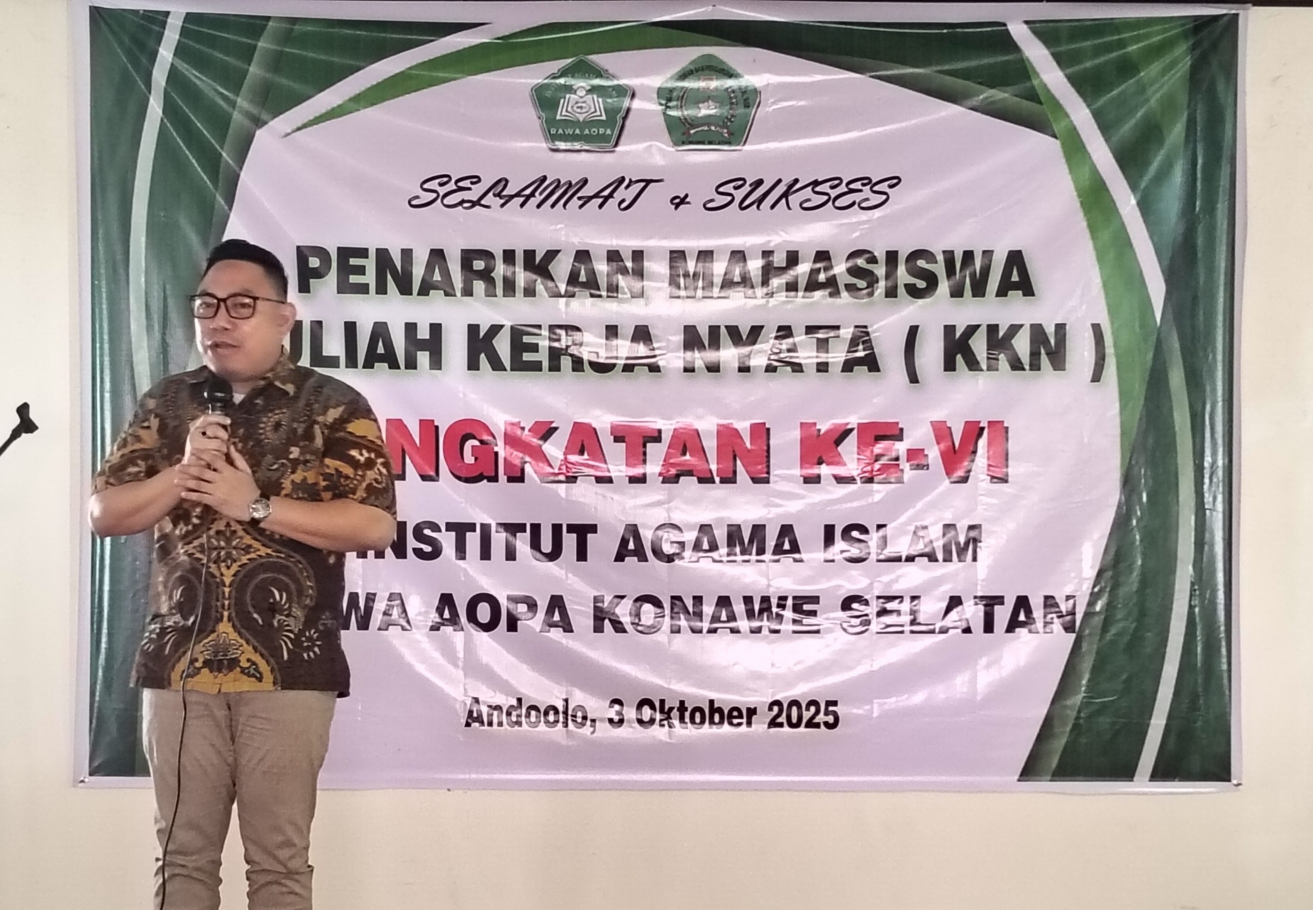 RedaksiSultra.Com-Konsel. Program Kuliah Kerja Amalia (KKA) mahasiswa Institut Agama Islam Rawa Aopa Konawe Selatan  resmi ditutup pada Hari Jumat.03 Oktober 2025, melalui kegiatan penarikan mahasiswa yang dilaksanakan di Andoolo. Acara ini dihadiri oleh Rektor, Ketua Yayasan, Dewan Pembina Yayasan, DPL,  serta masyarakat setempat.